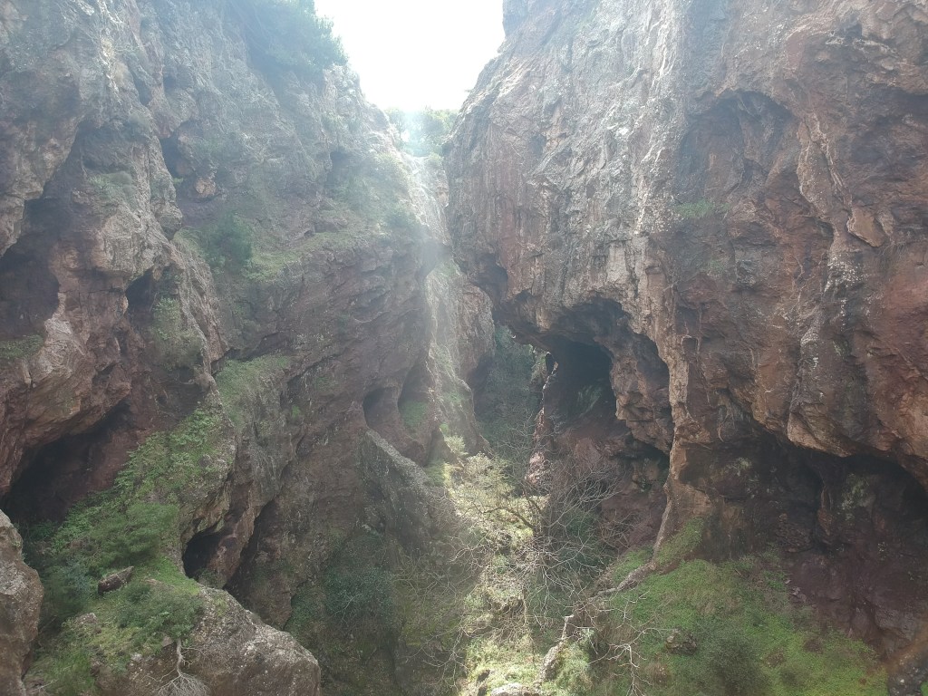 Innen már könnyű volt, hamar meglett a szakadék, és azt kell mondjam, az adrenalin szintje nem csökkent. Két meredek sziklafal között egy jó 30-40 méter mély szakadék, mely több száz méteren keresztül húzódik előttünk. Félelmetes!